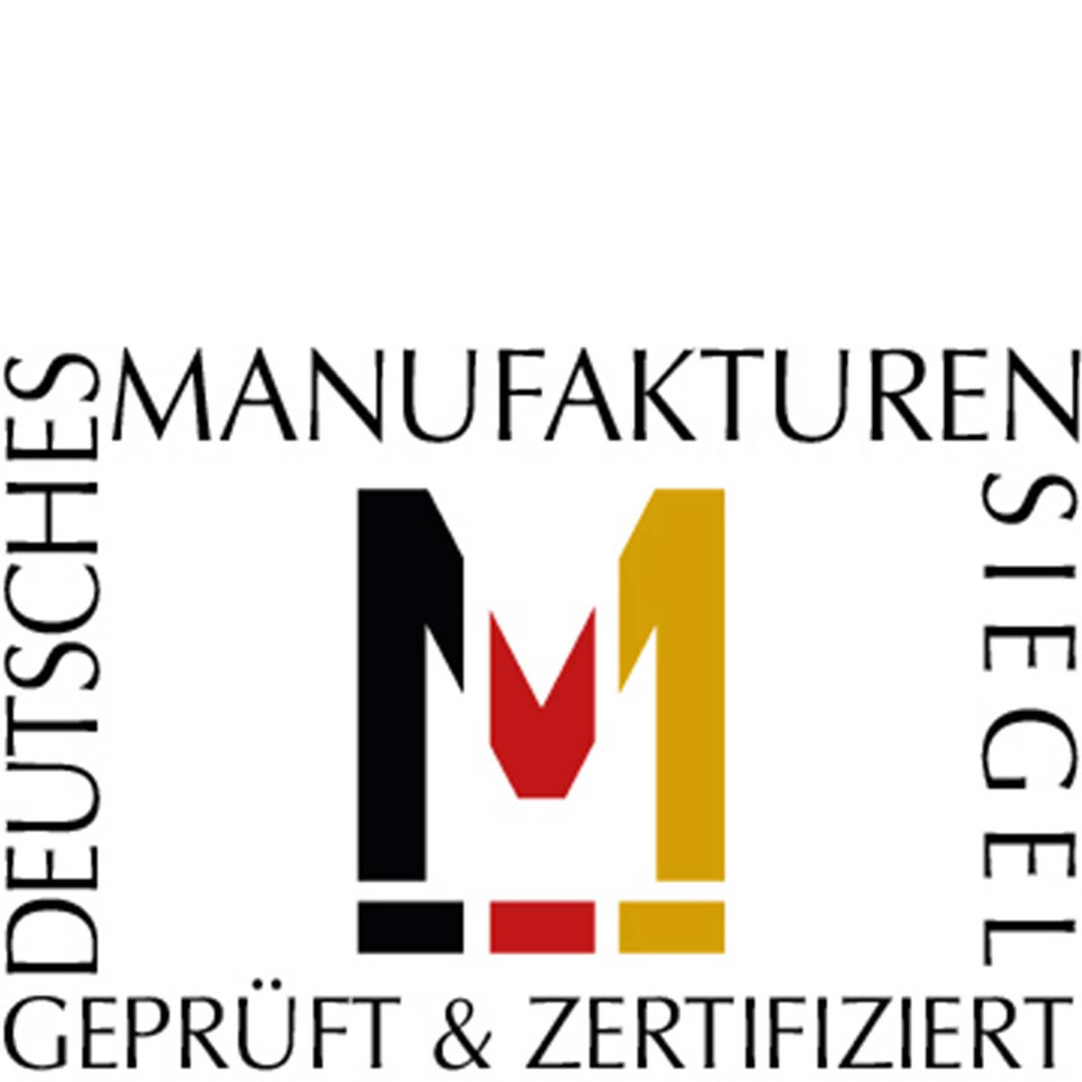 Wir sind ausgezeichnet mit dem Siegel des Deutsche Manufakturen — Handmade in Germany e.V. und erfüllen dessen strenge Kriterien für eine Manufaktur: Firmensitz in Deutschland, eigene Produktion in Deutschland, min. 50% Handarbeit, u.v.m.
